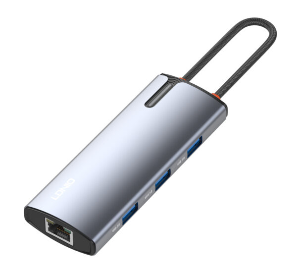 LDNIO docking station DS-16H, 6 θυρών, USB-C σύνδεση, 4K, 100W PD, γκρι