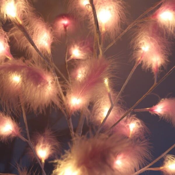Led Φωτιζόμενο Χριστουγεννιάτικο Δέντρο Λευκό Με Ροζ Πούπουλα Με 48Led Θερμό Φωτισμό 1.20m – Chistmas LED tree pink feather