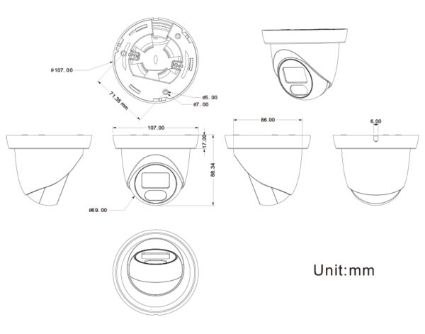 Υβριδική κάμερα 4 σε 1 (AHD, TVI, CVI, CVBS), με φακό 2.8mm, 1/3" CMOS αισθητήρα, ανάλυση 5MP και εμβέλεια φωτός έως 25m. Διαθέτει διακόπτη για να αλλάξετε την λειτουργία εύκολα και γρήγορα σε AHD, TVI, CVI, CVBS, αλλά και μικρόφωνο για μεταφορά ήχου μέσω του ομοαξονικού καλωδίου (Audio Over Coaxial) χωρίς να απαιτείται χρήση έξτρα καλωδίου.
