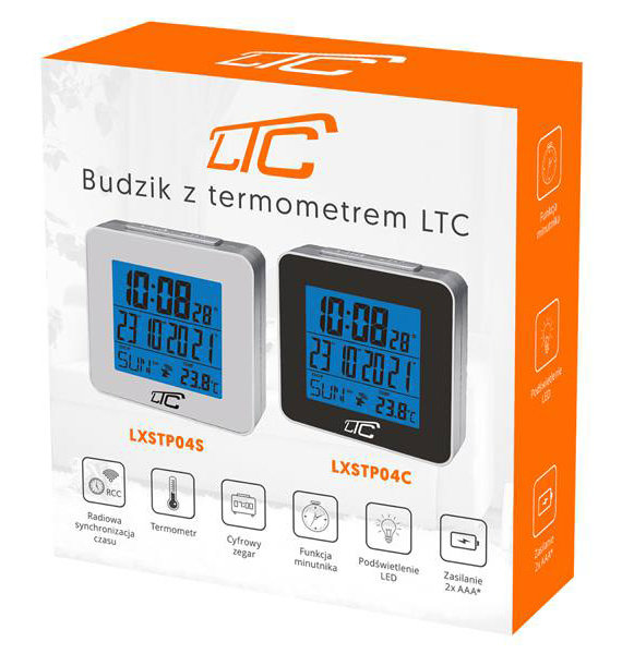LTC ψηφιακό ρολόι LXSTP04C με ξυπνητήρι & θερμόμετρο, επιτραπέζιο, μαύρο