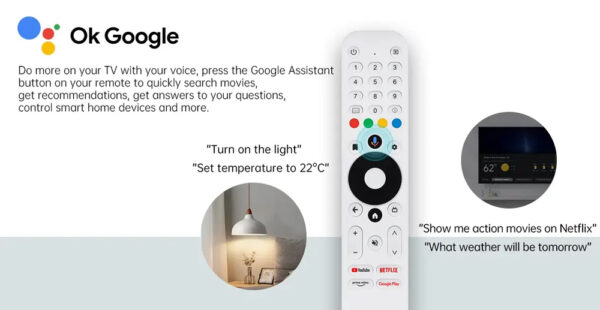 Τηλεχειριστήριο για TV Box KM2 Plus Deluxe από την Mecool. Διαθέτει πλήκτρα YouTube, Prime Video, Google Play και Netflix. Υποστηρίζει φωνητικές εντολές με Google Assistant.