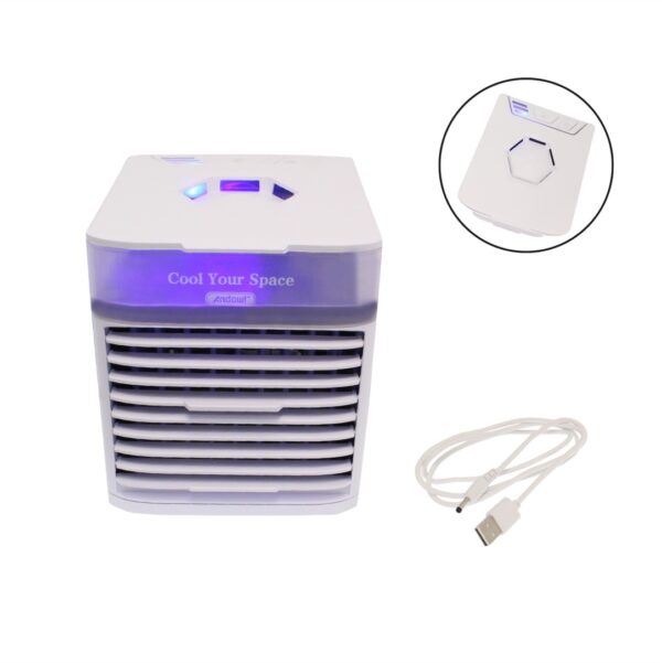Μini κλιματιστικό χώρου για να δροσίσετε το χώρο σας. Το μόνο που χρειάζεται να κάνετε είναι να γεμίσετε το δοχείο νερού με κρύο νερό ή παγάκια και να το συνδέσετε σε μια θύρα USB για να παίρνει ρεύμα. Με 3 ταχύτητες ψύξης, που μπορείτε να ρυθμίσετε ανάλογα την ένταση του κρύου αέρα που επιθυμείτε να βγάζει. Με ένα γέμισμα λειτουργεί για έως και 10 ώρες.