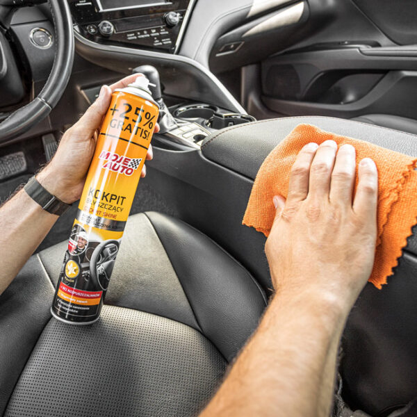 Σπρέι γυαλίσματος που καθαρίζει και διατηρεί όλα τα πλαστικά στο εσωτερικό του αυτοκινήτου. Με ευχάριστο άρωμα βανίλιας και αντιστατικές ιδιότητες για την μείωση της συσσώρευσης σκόνης. Αφήνει ένα φινίρισμα λάμψης στις καθαρισμένες επιφάνειες, καθυστερώντας τη γήρανση των πλαστικών.