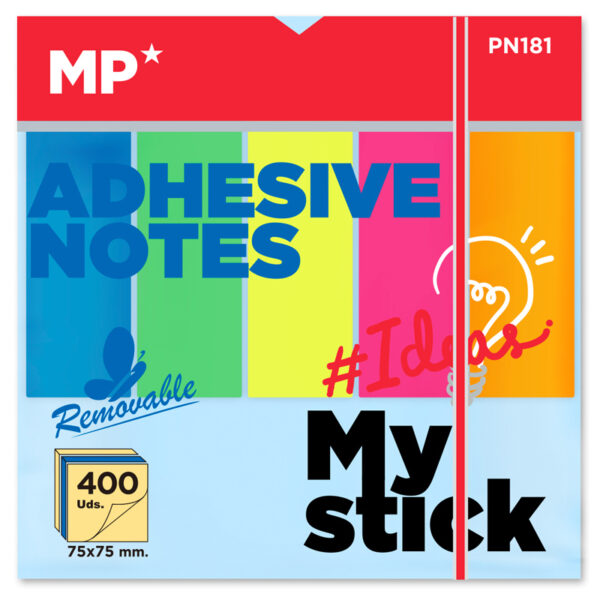 MP αυτοκόλλητα χαρτάκια σημειώσεων PN181 75x75mm, 400+100τμχ, χρωματιστά