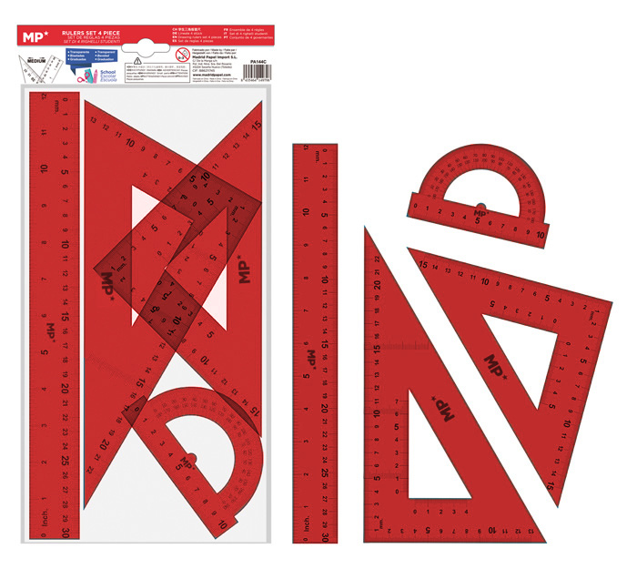 MP σετ χάρακες PA144C, διάφανο πλαστικό, 4τμχ, μωβ