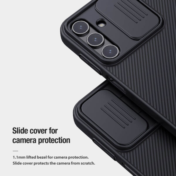 Η σειρά CamShield της Nillkin χαρακτηρίζεται από την ενισχυμένη προστασία που προσφέρει το σκληρό υλικό κατασκευής της με την ανάγλυφη επιφάνεια αλλά και την έξτρα προστασία των καμερών και της ιδιωτικότητας σας, χάρη στο συρόμενο καπάκι της. Η επιφάνεια της είναι αντιολισθητική, έχει ενισχυμένα άκρα, δεν χαράσσεται και δεν κάνει δαχτυλιές.