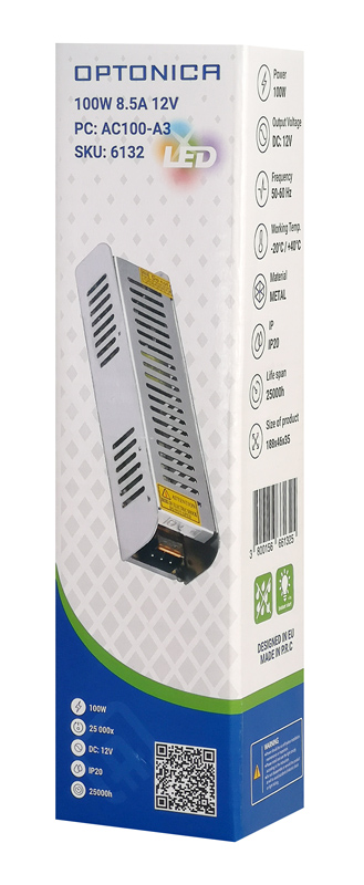 OPTONICA τροφοδοτικό LED καλωδιοταινίας 6132, 100W, 12V/8.5A
