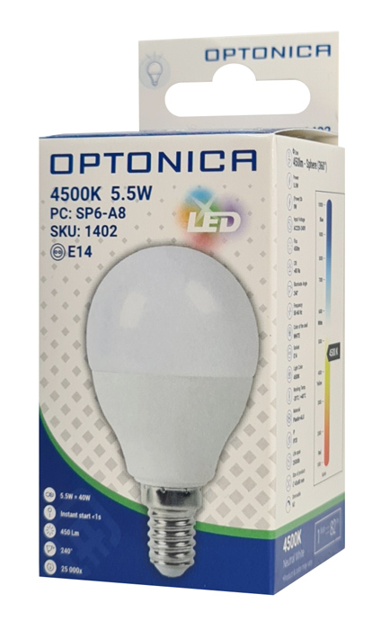 OPTONICA LED λάμπα G45 1402, 5.5W, 4500K, E14, 450lm