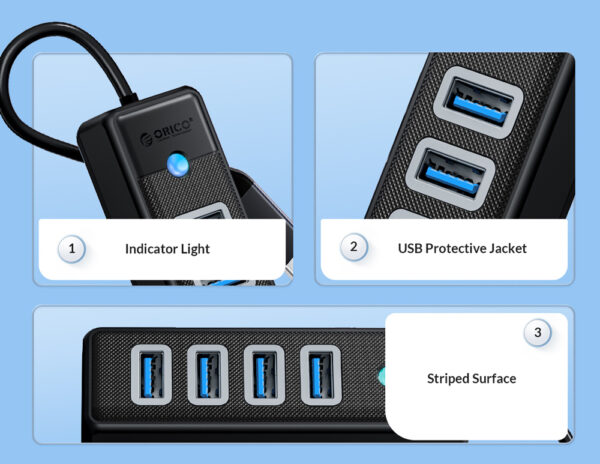Αυτό το hub της ORICO μπορεί να συνδεθεί με το laptop ή το desktop σας μέσω θύρας USB-C και να επεκτείνει τις θύρες του με 4x USB θύρες. Διαφορετικές συσκευές USB, όπως εξωτερικοί σκληροί δίσκοι, card readers, ποντίκια κλπ. μπορούν να συνδεθούν μέσω του hub.