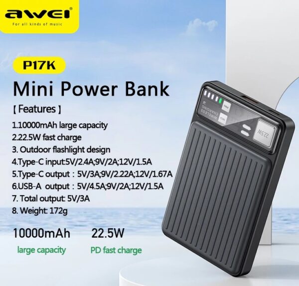 Powerbank – P17K – 10.000mah – 22.5W – AWEI – 005197