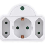 Αντάπτορας ρεύματος Powertech 3 θέσεων, 1x schuko και 2 διπολικών, με μηχανισμό ασφαλείας για παιδιά και προστασία υπέρτασης.