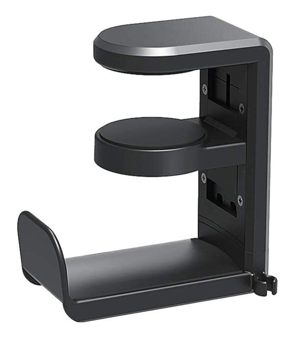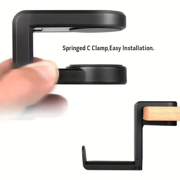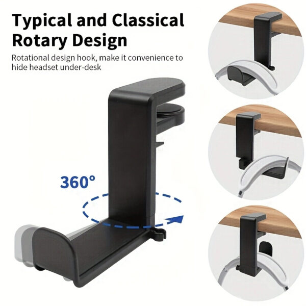 Χάρη στον περιστρεφόμενο μηχανισμό 360°, τα ακουστικά μπορούν να τοποθετηθούν σε διάφορες θέσεις, ενώ ο σφιγκτήρας τοποθέτησης είναι επενδυμένος με αντιολισθητικά pads εξασφαλίζοντας σταθερή εφαρμογή χωρίς να φθείρει την επιφάνεια του γραφείου.