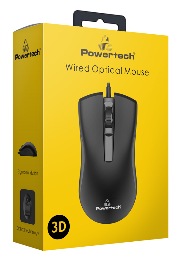 Ενσύρματο οπτικό ποντίκι της Powertech με εργονομικό σχεδιασμό που ταιριάζει απόλυτα στο χέρι και δεν προκαλεί κόπωση κατά τη λειτουργία του.