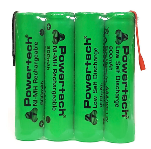 Σετ επαναφορτιζόμενων μπαταριών τύπου Ni-Mh AAA (HR03), έτοιμες για χρήση σε συσκευές που απαιτούν 4 ενωμένες μπαταρίες.