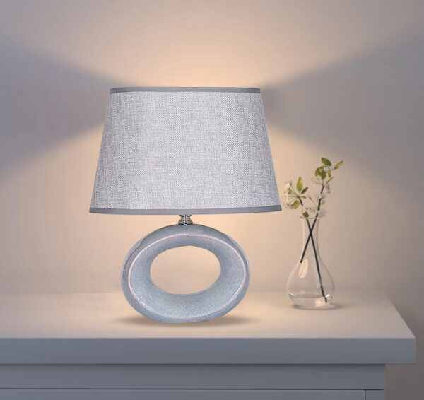 POWERTECH επιτραπέζιο φωτιστικό HLL-0136, E27, κεραμική βάση, γκρι