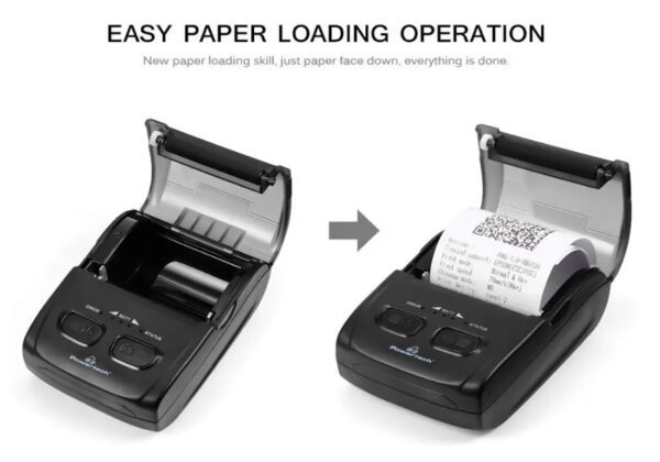 Φορητός θερμικός εκτυπωτής αποδείξεων, συμβατός με λειτουργικά συστήματα Windows, Linux, Android και iOS. Υποστηρίζει συνδεσιμότητα μέσω USB και Bluetooth. Τροφοδοτείται από ενσωματωμένη επαναφορτιζόμενη μπαταρία χωρητικότητας 1500mAh.