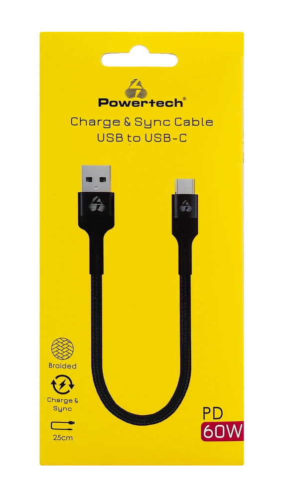 POWERTECH καλώδιο USB-C σε USB PTR-0166, 60W, 480Mbps, 25cm, μαύρο