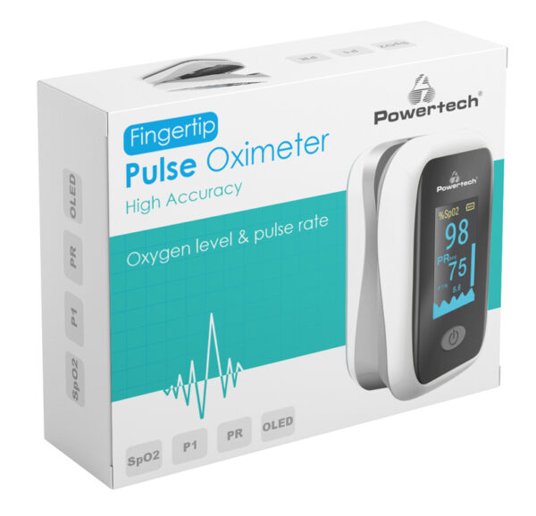 Το παλμικό οξύμετρο δακτύλου της Powertech, μετράει τα επίπεδα κορεσμού του αίματος σε οξυγόνο (SpO2) και τους καρδιακούς παλμούς σε λίγα δευτερόλεπτα. Τοποθετώντας το δάκτυλο στον αισθητήρα μετρά με ακρίβεια και αξιοπιστία, απεικονίζοντας τα αποτελέσματα στην φωτιζόμενη οθόνη της συσκευής. Ιδανικό για άτομα με καρδιακή ανεπάρκεια, χρόνιες παθήσεις, βρογχικό άσθμα, καθώς και για αθλητές.
