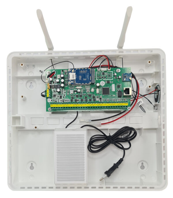 -υποστήριξη 8x ασύρματων χειριστηρίων, 4x ασύρματων σειρήνων αμφίδρομης επικοινωνίας, 8x πληκτρολόγιων, 1x εξοδος για ρελέ