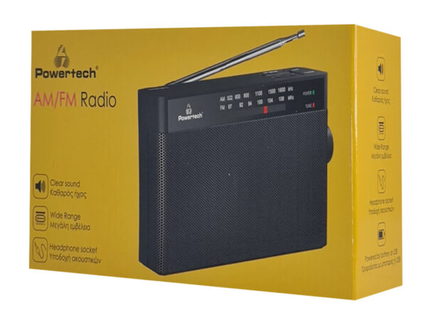 POWERTECH φορητό ραδιόφωνο PT-1244 με πτυσσόμενη κεραία, μαύρο