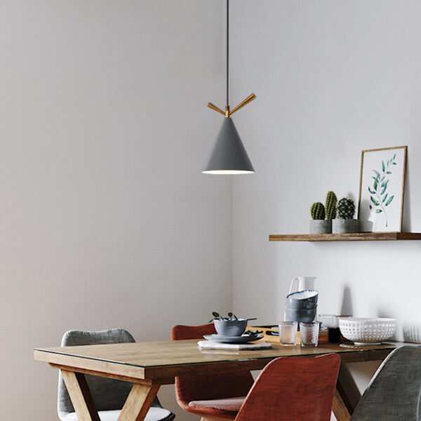 Κομψό, κρεμαστό φωτιστικό οροφής σε σχήμα κώνου με προσεγμένο φινίρισμα που θα προσφέρει στον χώρο σας έναν όμορφο τόνο. Το καλαίσθητο σχέδιο του προσδίδει συμβατότητα σε κάθε χώρο, ταιριάζοντας αρμονικά είτε σε μοντέρνο είτε σε πιο παραδοσιακό περιβάλλον. Το φωτιστικό είναι κατασκευασμένο από μέταλλο με χρυσή λεπτομέρεια που δίνει μια ιδιαίτερη νότα στο σύνολο.