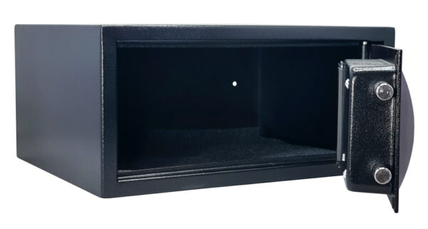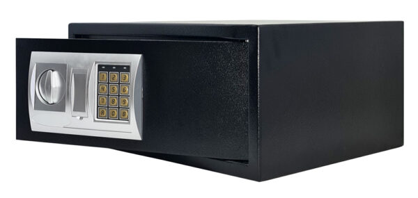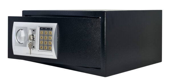 Χρηματοκιβώτιο της Powertech με δύο ενισχυμένους πύρους κλειδώματος, κατασκευασμένο από ατσάλι. Διαθέτει προγραμματιζόμενη ψηφιακή κλειδαριά, 3-8 ψηφίων, που σας επιτρέπει να επιλέγετε τον συνδυασμό που επιθυμείτε και κλειδαριά ασφαλείας με κλειδί που ανοίγει το χρηματοκιβώτιο σε περίπτωση ανάγκης.