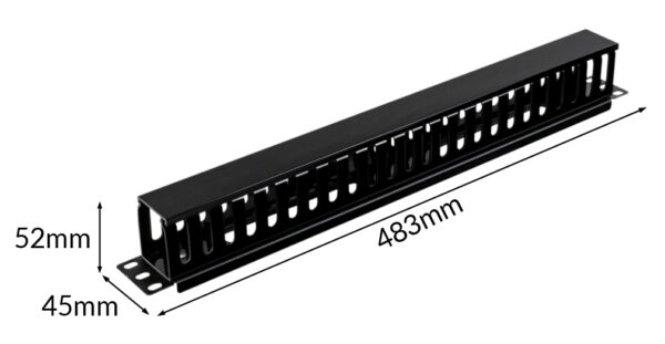 Cable management της Powertech κατάλληλο για τοποθέτηση σε 19" καμπίνες rack. Διαθέτει από 24 ανοίγματα στο πάνω και κάτω μέρος αλλά και 2 ανοίγματα στο πίσω μέρος για να περνούν τα καλώδια. Το μπροστινό panel είναι αφαιρούμενο και βοηθάει στο κρύψιμο των καλωδίων και παράλληλα στην προστασία τους από την φθορά.