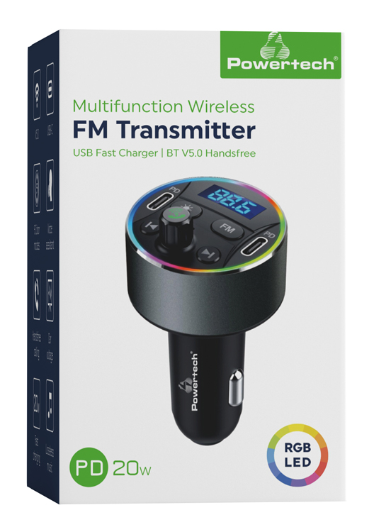 Ο FM Transmitter της Powertech επιτρέπει την ασύρματη μετάδοση ήχου από την συσκευή προς το ραδιόφωνο του αυτοκινήτου σας. Είναι ιδανικό για αυτοκίνητα που δεν έχουν players με δυνατότητα αναπαραγωγής MP3 αρχείων. Υποστηρίζει αναπαραγωγή μέσω Bluetooth διαθέτει οθόνη και 2 PD USB-C Θύρες για φόρτιση συσκευών. Υποστηρίζει λειτουργία κλήσης, με το πάτημα ενός κουμπιού.