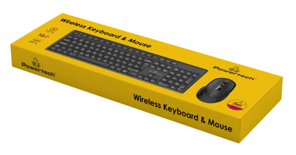 Set περιφερειακών για PC από την Powertech που αποτελείται από ασύρματο πληκτρολόγιο και ασύρματο οπτικό ποντίκι.
