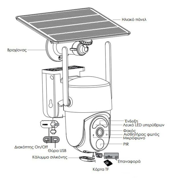 Η ασύρματη ηλιακή smart κάμερα της Powertech καταγράφει κάθε κίνηση σε καθαρή, υψηλής ευκρίνειας ανάλυση, με έγχρωμη εικόνα, ακόμη και κατά την διάρκεια της νύχτας. Διαθέτει 2.8mm φακό με αισθητήρα ανάλυσης 4MP και υποστηρίζει PTZ λειτουργία.