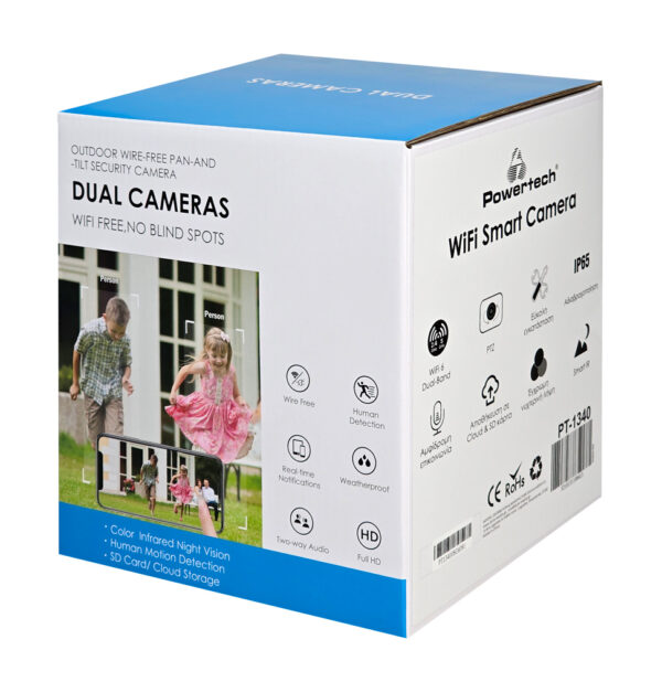 POWERTECH smart κάμερα PT-1340, 3MP, dual lens, WiFi, PTZ, SD, IP65