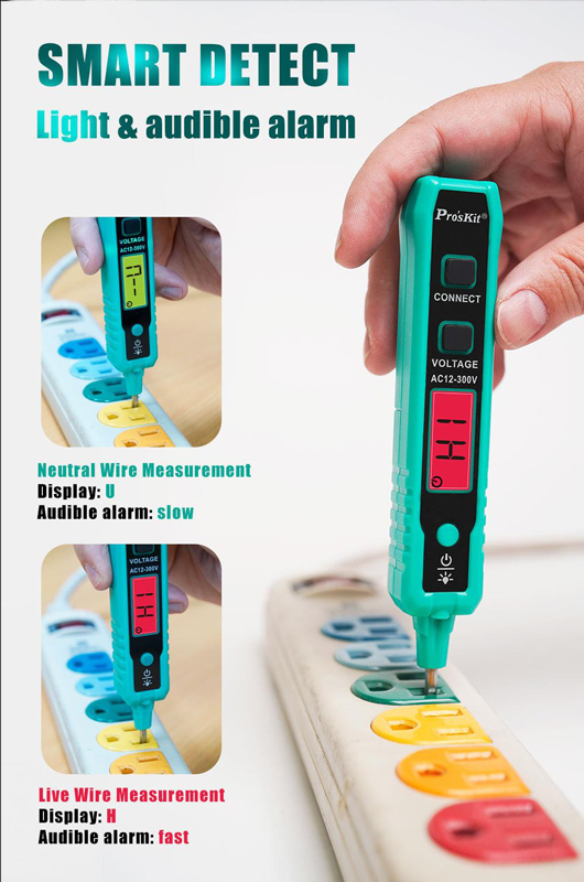Ανιχνευτής τάσης της PROSKIT με εύρος μέτρησης από 12V έως 300V.