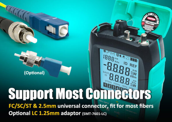 -Accuracy: +/-0.2dB (1310/1550nm), +/-0.3dB (850/980/1300/1490/1625/1650nm), +/-1dB (1270/1577nm)