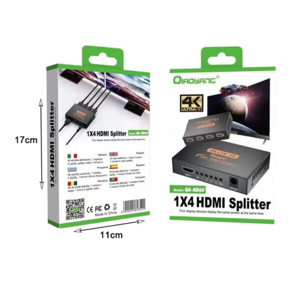 Qiaoyang HDMI splitter 1×4 Διαχωριστής σήματος από 1 είσοδο σε 4 εξόδους QA-HD60