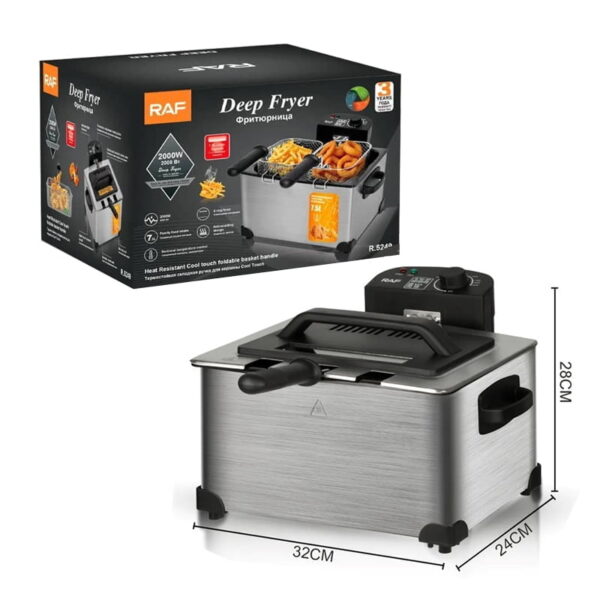Η φριτέζα της Raf με ισχύ 2000W, είναι μια κλασική φριτέζα με χωρητικότητα λαδιού 5 λίτρα.