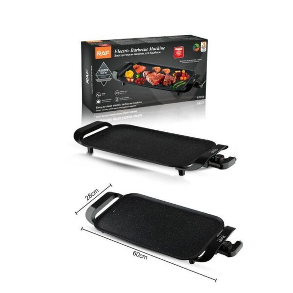 Ψησταριά-μπάρμπεκιου Raf με μέγιστη ισχύ 1800W για ψήσιμο φαγητών όπως το ψάρι, το κρέας, τα λαχανικά ή ακόμα και πιο ιδιαίτερων υλικών όπως το αυγό.Το πλεονέκτημα των ηλεκτρικών ψησταριών είναι ότι ανάβουν αμέσως και πιάνουν θερμοκρασία γρήγορα.Η ψησταριά αυτή έχει επιφάνεια ψησίματος 50x27cm.Παρέχει δυνατότητα ρύθμισης θερμοκρασίας στο επιθυμητό επίπεδο ανάλογα με το είδος του φαγητού που θέλετε να μαγειρέψετε.Χαρακτηριστικά: