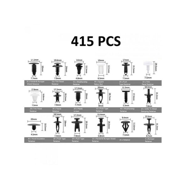 Πλαστικά κουμπώματα- κλιπ ταπετσαρίας αυτοκινήτου 415 τεμαχίων.