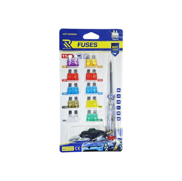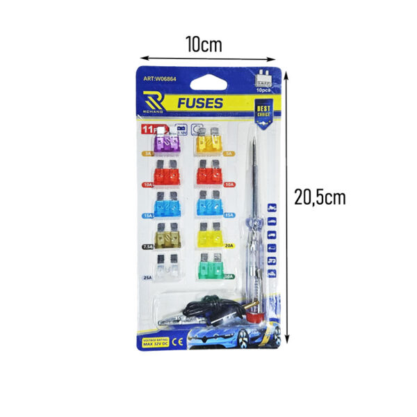 RCHANG Σετ Ασφαλειών Αυτοκινήτου 10 Τμχ & Δοκιμαστικό Ρεύματος 12V DC W06864 – Car Fuses Set