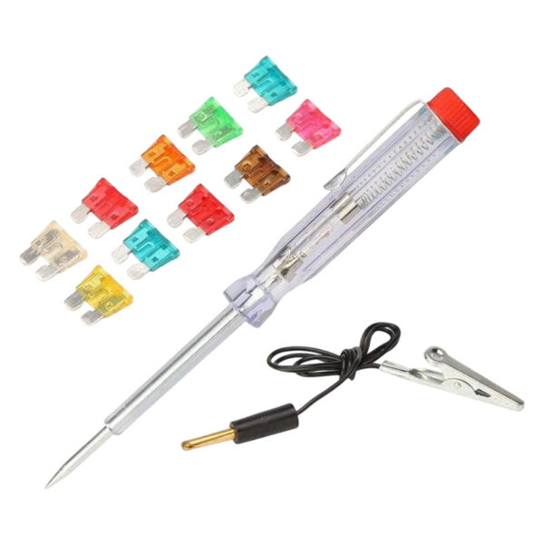 Επιπλέον, το σετ περιλαμβάνει ένα δοκιμαστικό ρεύματος (power tester) ειδικά σχεδιασμένο για συστήματα 12V DC, καθιστώντας τον εντοπισμό βλαβών και την επαλήθευση της παρουσίας ρεύματος σε διάφορα σημεία του οχήματος μια εύκολη υπόθεση. Ο δοκιμαστικός ελεγκτής είναι ένα απλό αλλά αποτελεσματικό εργαλείο για τον έλεγχο ασφαλειών, καλωδίων, φώτων και άλλων ηλεκτρικών εξαρτημάτων. Είναι ένα ιδανικό κιτ για κάθε οδηγό που θέλει να είναι προετοιμασμένος για μικρές ηλεκτρικές επισκευές ή συντηρήσεις στο αυτοκίνητο. Η ένδειξη “BEST CHOICE” στην συσκευασία υποδηλώνει την ποιότητα και την αξία του προϊόντος.