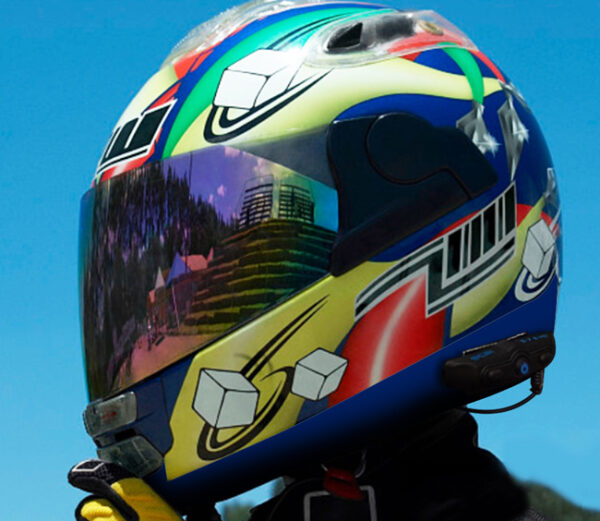 Σύστημα ενδοεπικοινωνίας με Bluetooth για κράνος μηχανής από την SCSETC. Επιτρέπει την ενδοεπικοινωνίας μεταξύ του αναβάτη και του επιβάτη σε εμβέλεια έως 50 μέτρα.