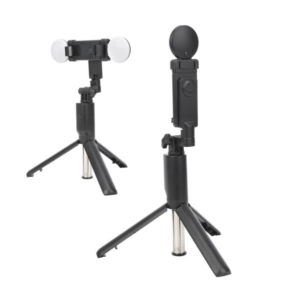Selfie stick με 2 led λάμπες για καλυτέρα αποτελέσματα στις φωτογραφίες και τα βίντεο σας. Διαθέτει ενσωματωμένο τρίποδα. Δυνατότητα προσαρμογή μήκους. Κατάλληλο και για Android και IOS. Διαθέτει καλώδιο USB σε micro usb και control για να τραβάτε φωτογραφίες, σύνδεση μέσω Bluetooth. Ανασυρμένο μήκος 7.64 inch. Εκτεταμένο μήκος 27.6 inch. Διαστάσεις 51x35x193mm.