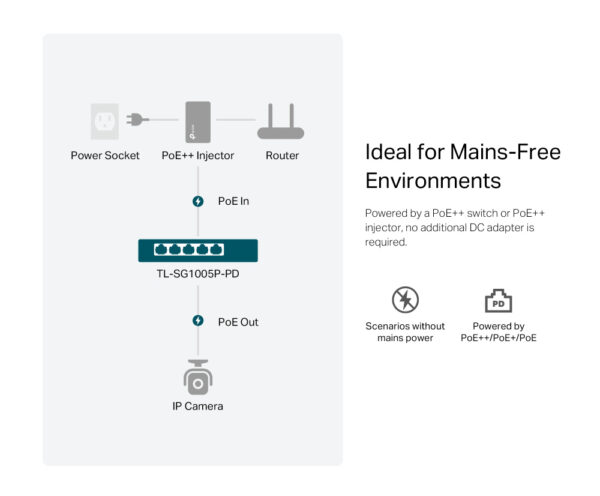 TP-LINK desktop switch TL-SG1005P-PD, 5x Gigabit θύρες, PoE+, UN/1.0