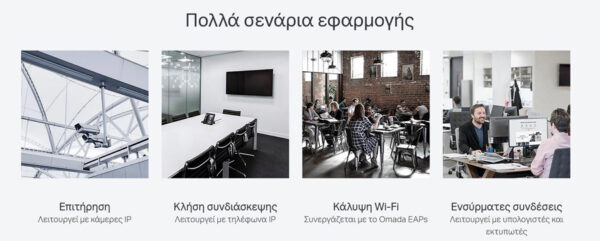 -Παρέχει παρακολούθηση δικτύου, προτεραιότητα κυκλοφορίας, δυνατότητες VLAN και αυτόματη ανάκτηση PoE
