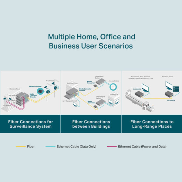 Επιπλέον, επεκτείνει την απόσταση ινών έως και 0.55km για multi-mode ίνα. Προσφέρει δυνατότητα χρήσης ως stand alone συσκευή ή με το Rackmount Chassis TL-MC1400 της TP-LINK.