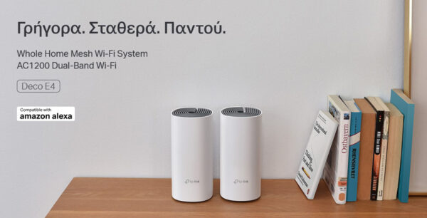 -Το Deco E4 παρέχει γρήγορες και σταθερές συνδέσεις με ταχύτητες έως 1167 Mbps και συνεργάζεται με τον κύριο πάροχο υπηρεσιών διαδικτύου (ISP) και μόντεμ.