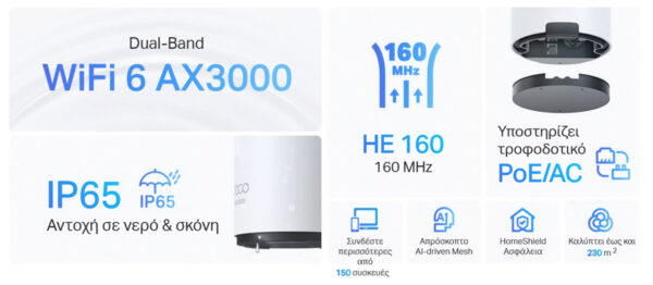 -Συνεργάζεται με όλα τα Decos – Συμβατό με οποιοδήποτε άλλο μοντέλο Deco δημιουργεί ένα Mesh δίκτυο.