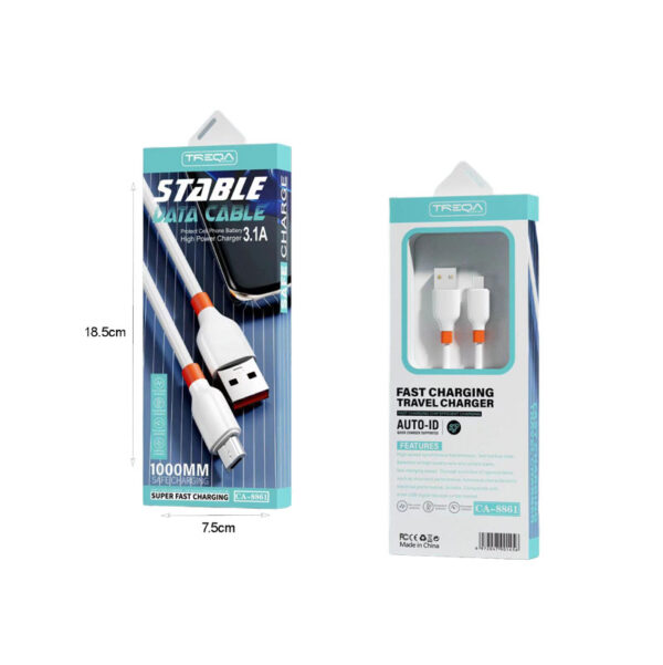 Treqa Kαλώδιο δεδομένων 1m USB Micro 3.1A CA-8861 – Charging Cable Micro