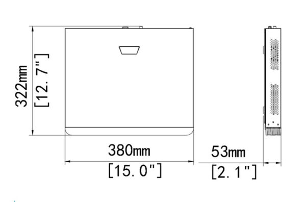 Dimensions (WxDxH): 380 x 322 x 53mm