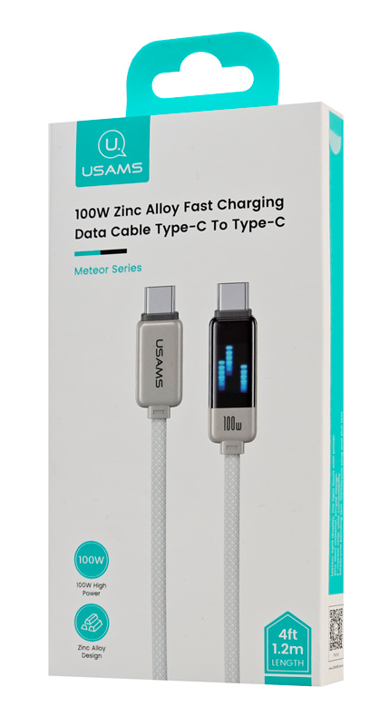 Καλώδιο φόρτισης και μεταφοράς δεδομένων USB-C σε USB-C της Usams. Υποστηρίζει φόρτιση με απόδοση έως 100W και μεταφορά δεδομένων με ταχύτητα έως 480Mbps.