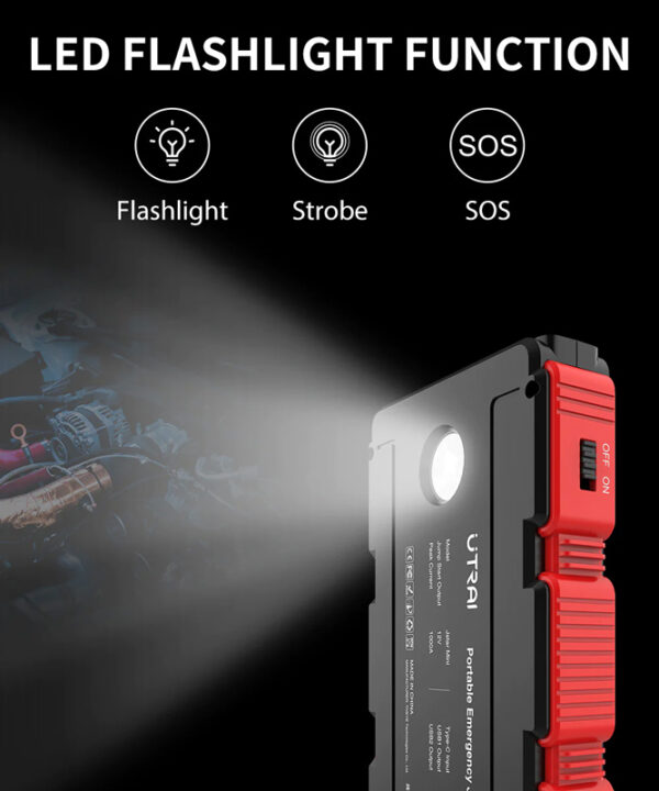 UTRAI εκκινητής μπαταρίας αυτοκινήτου JS-Mini με φακό, 12V/1000A, 13000mah